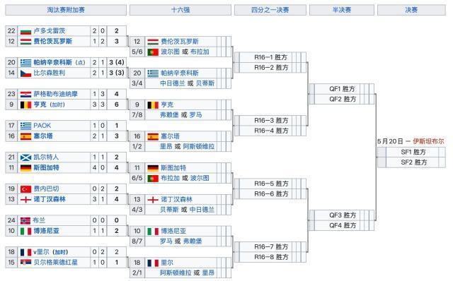 欧协杯淘汰赛附加赛重要场次比分:
